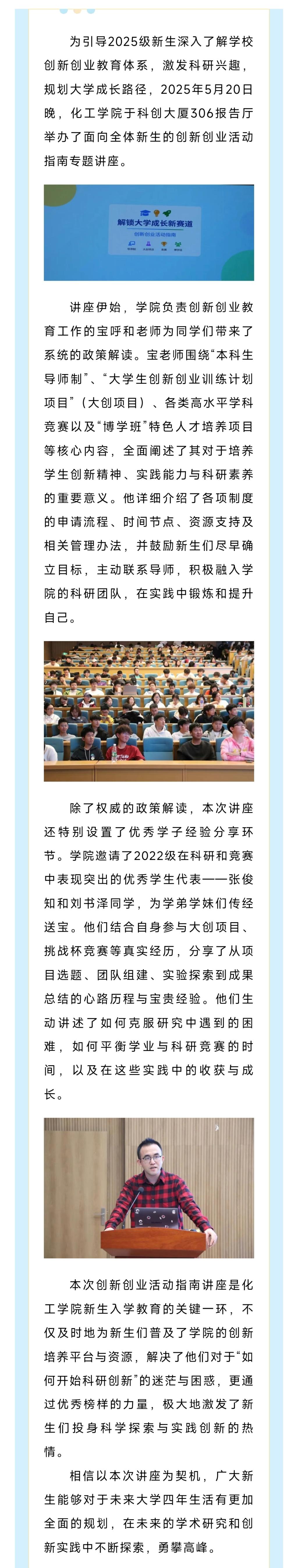 解锁大学生成长新赛道——化工学院举办大学生创新创业指导讲座