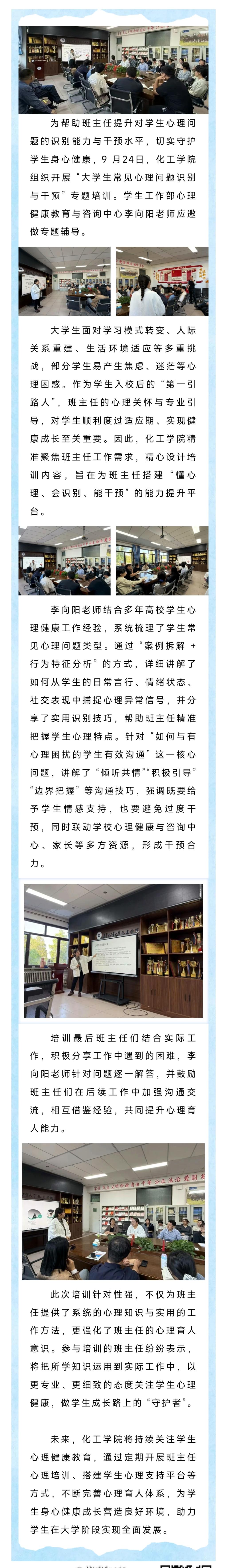 筑牢心理防线 护航学生成长——化工学院组织班主任开展学生常见心理问题识别与干预专题培训